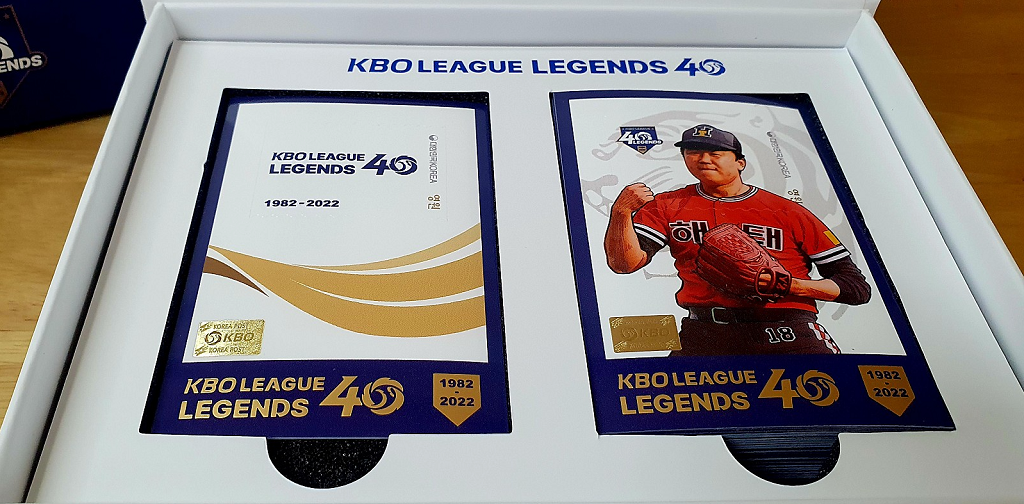 뒷면에는 레전드 선수들의 KBO 리그 통산 기록 및 주요 수상 연혁 등을 담았다.