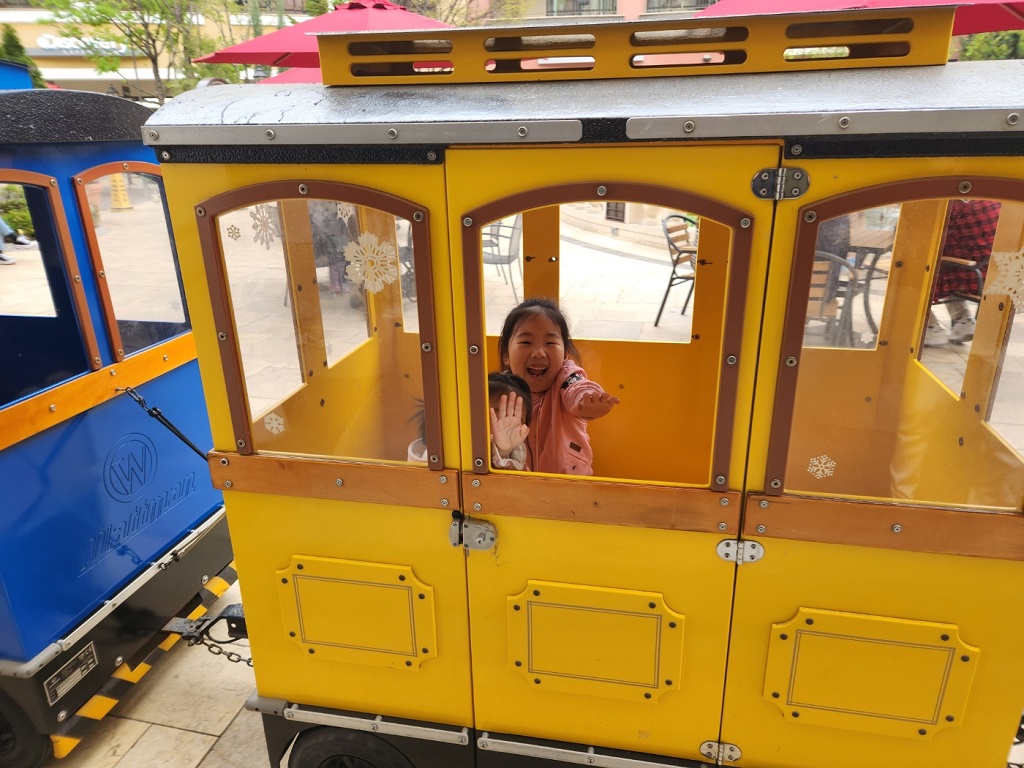잠시들러서 애들 기차나 자동차 한번 태워주고 가면