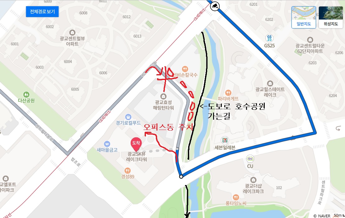 (근데 한바퀴 돌려면 걸어서 2시간 걸리는 호수공원을 어떻게..)