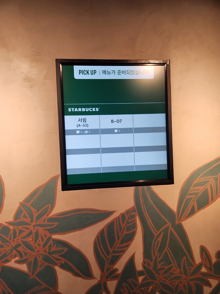 (주문한 매뉴가 나왔는지 확인할 수 있는 보드판이 벽면에 있다)