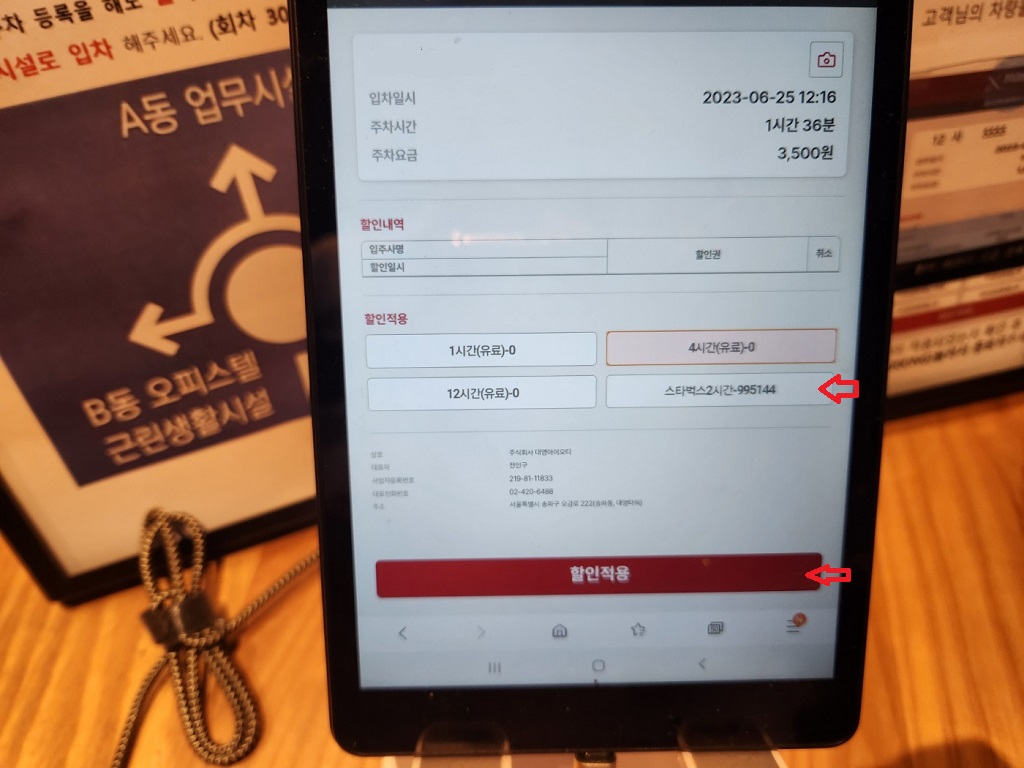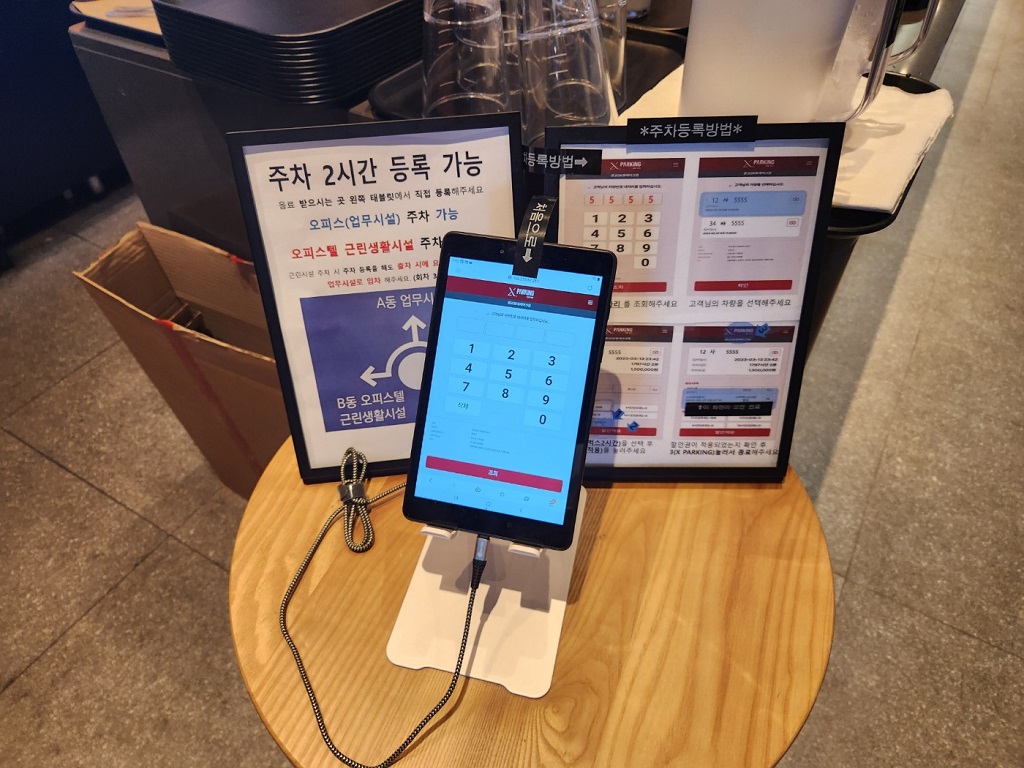 #주차 2시간 할인등록 셀프임 (카운터 맨 왼쪽 끝에 있음)