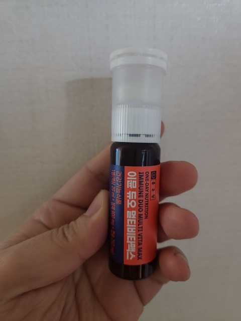 위에 뚜껑을 따고 알약 2알과 액상 비타민을 마시면 되는 건데